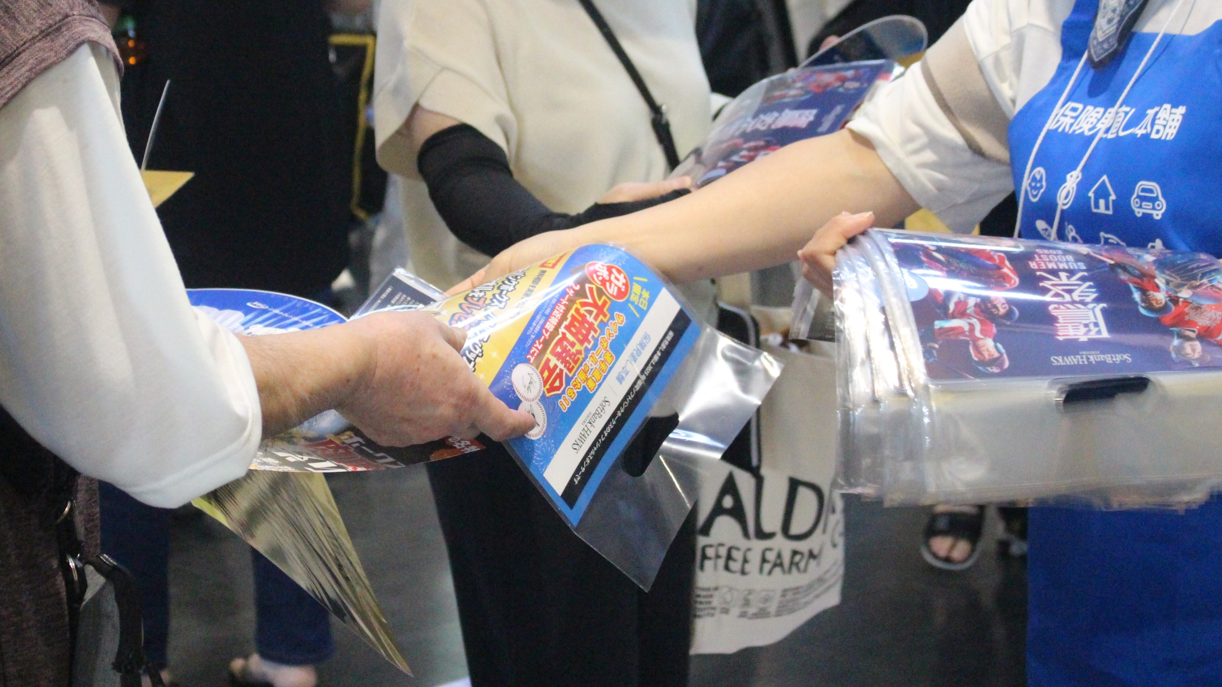 青山商事株式会社は、来場者を対象にオリジナルクリアファイルのサンプリングを実施しました。