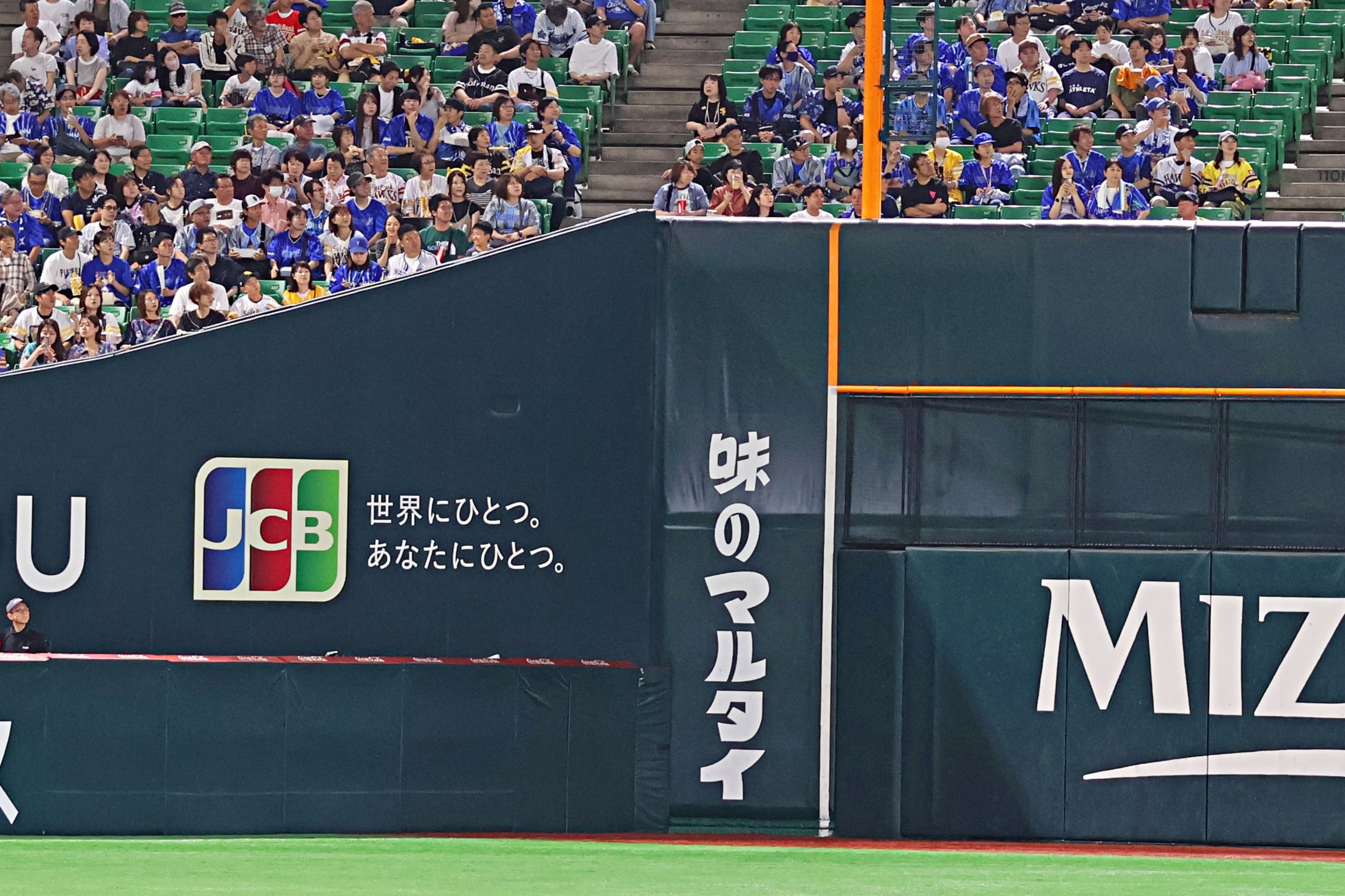 外野エリアのファウルポールには、地元福岡の老舗食品メーカー「マルタイ」のブランドが掲出されています。「棒ラーメン」に似たポールの形状に着目し、“ファウルポール=棒ラーメン”という発想から誕生した日本初のネーミングライツです。