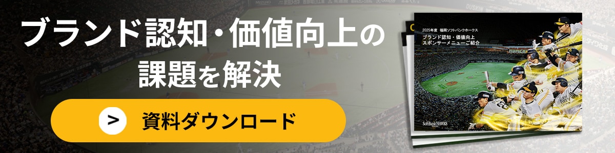 『福岡ソフトバンクホークス』では、従業員満足度を高める手段として有効なスポンサーシップについてご紹介しています。詳しくは、こちらの資料をご確認ください。