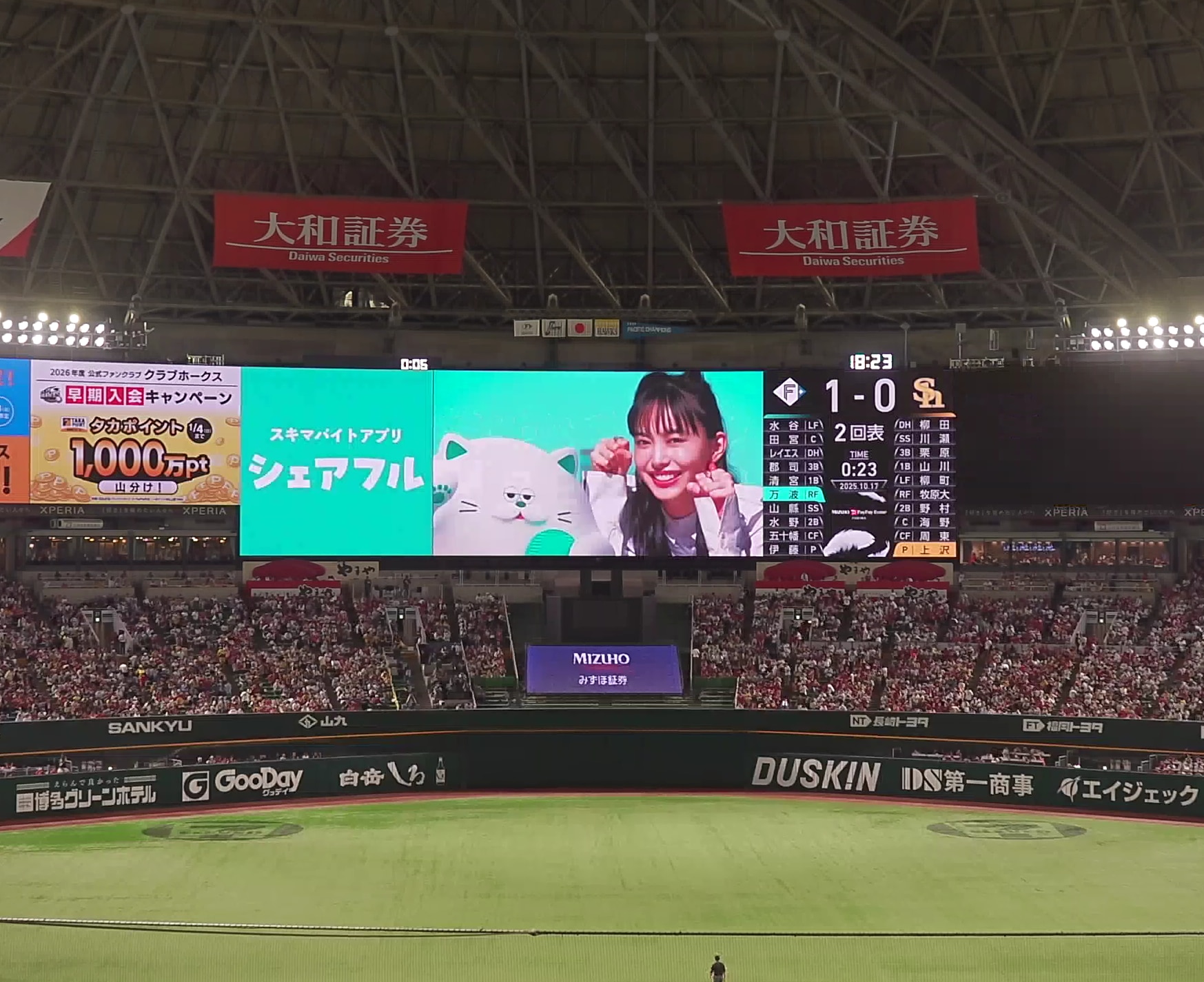 みずほPayPayドーム内には、ビジョン広告や場内サイネージ、各種看板など、複数の広告接点が用意されており、試合中・イニング間・演出タイミングなど、観戦体験の流れの中で継続的な接触が生まれます。
