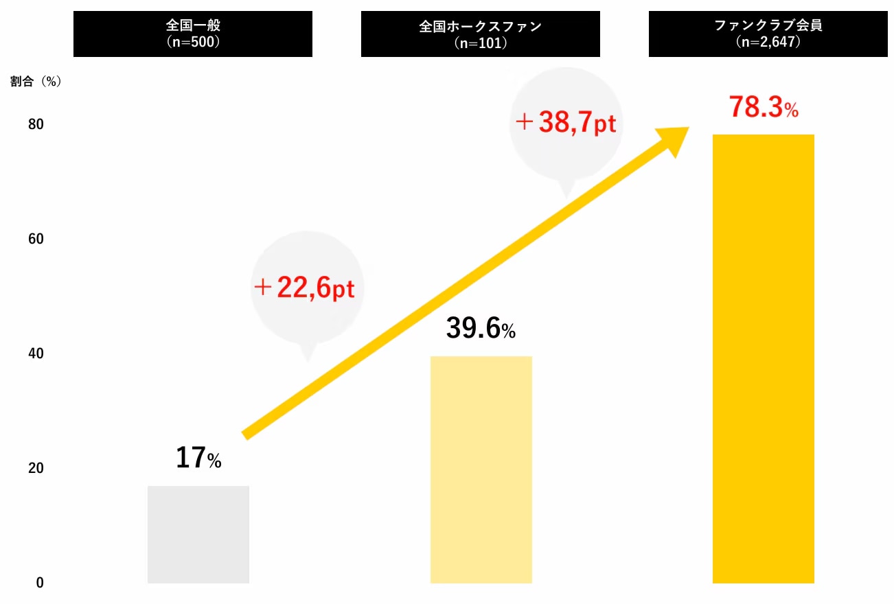 - ファンクラブ会員: 78.3%※出典:福岡ソフトバンクホークス『インパクト調査2024』