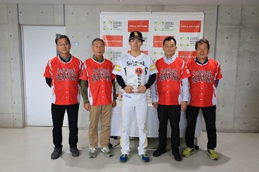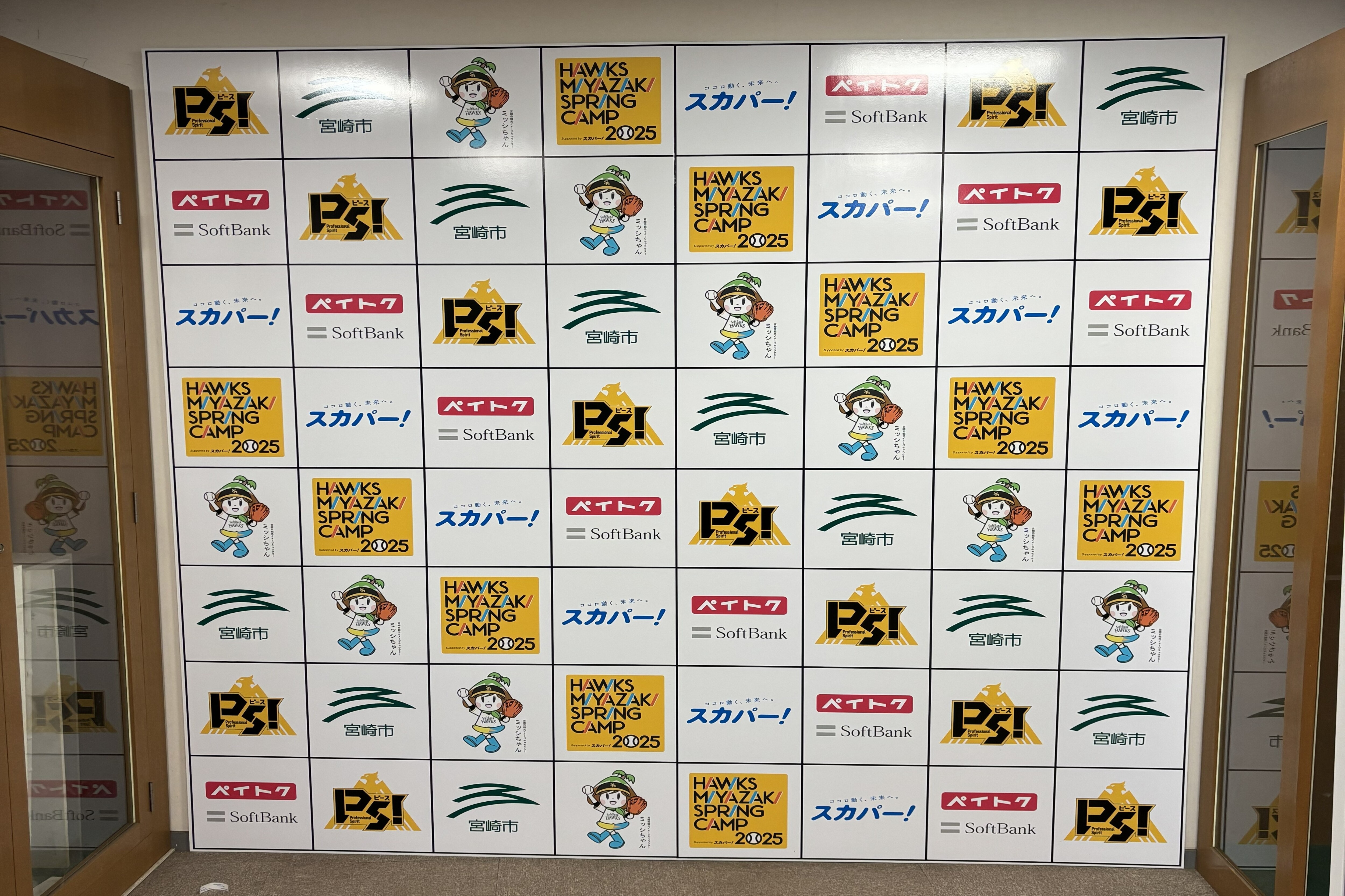 福岡ソフトバンクホークスのファーム本拠地である「タマホーム スタジアム筑後」でも、表敬訪問や贈呈式、試合後のインタビューなどの場面でインタビューボードが活用されています。