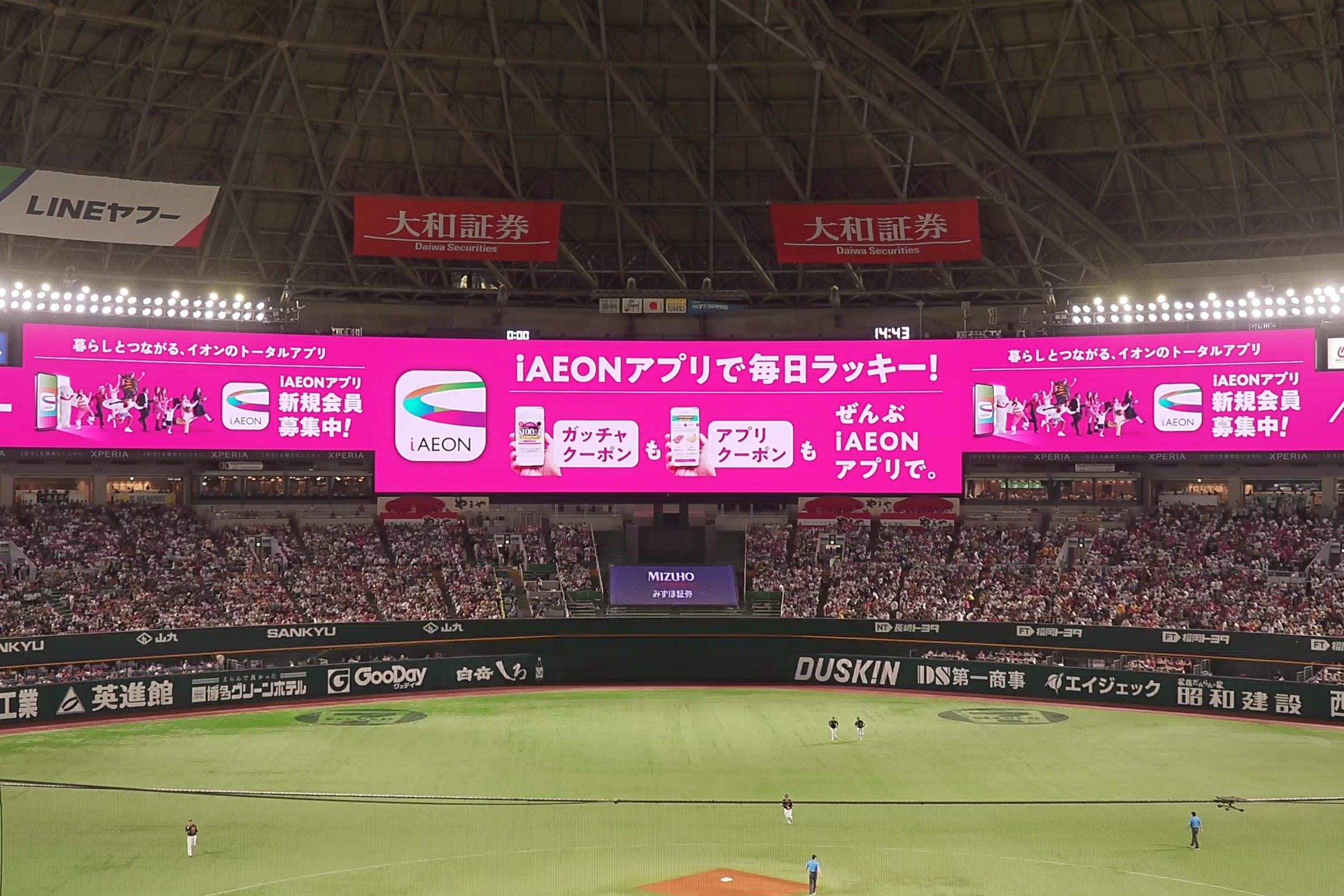 みずほPayPayドームや隣接するエンタメ施設BOSS E・ZO FUKUOKAの大型ビジョンで、CMを放映しています。みずほPayPayドームの来場者に対し、購買につなげる効果的なPRを実施されています。