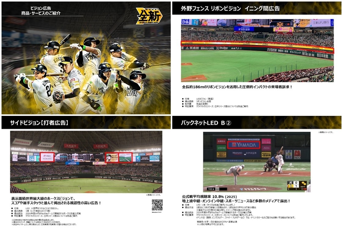 福岡ソフトバンクホークスの球場広告事例を通じて、掲出デザインの工夫や活用方法、実際に得られた成果を、具体的な事例を基に解説しています。