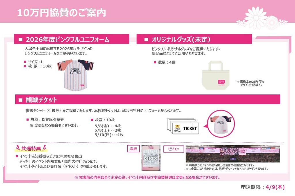 ホークスの公式戦で、最高の盛り上がり・注目度を誇る「ピンクフルデー」や「鷹祭 SUMMER BOOST」などの各イベントの協賛プランについて紹介しています。下記に当てはまる方は、こちらより資料をダウンロードください。