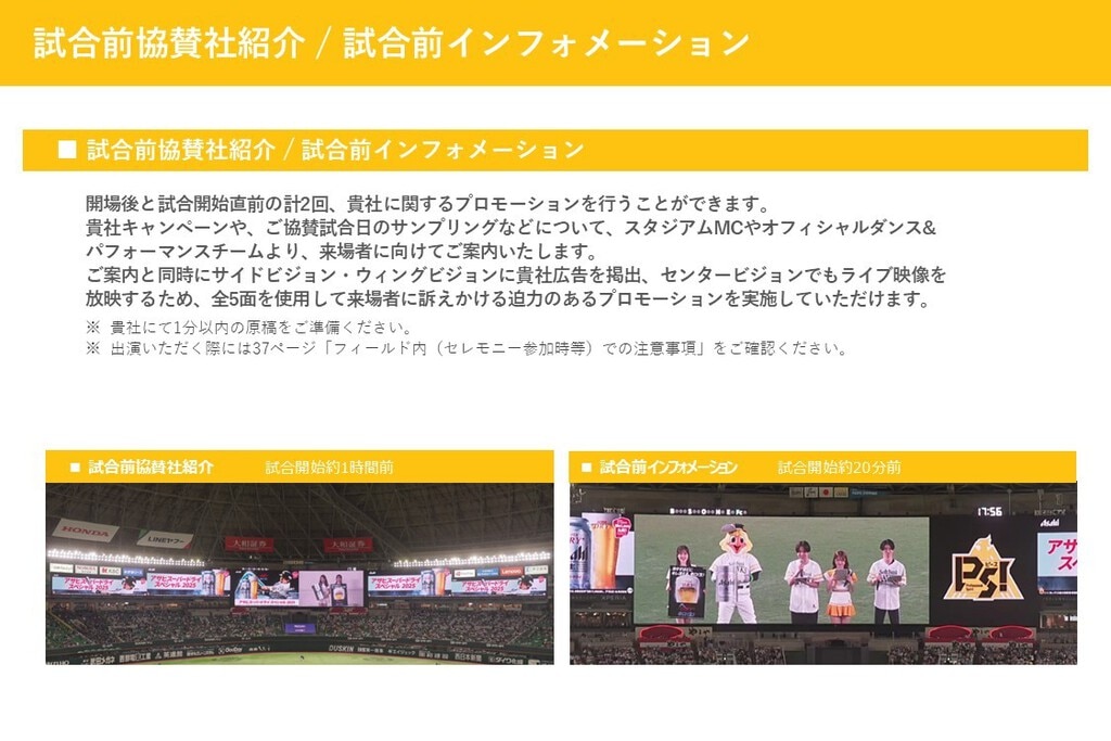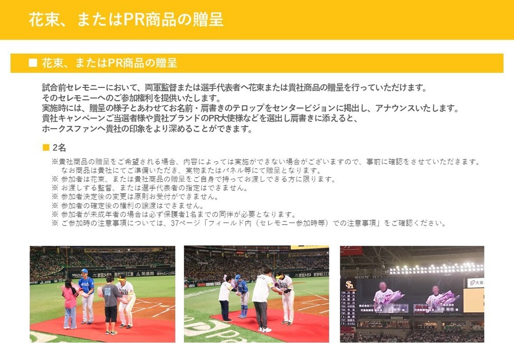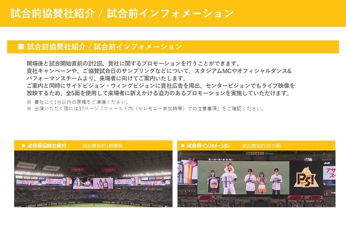 開催試合にスポンサーシップをご提供いただき、企業名などを冠して認知度向上などを図る「冠協賛(ゲームデースポンサー)」について紹介しています。下記に当てはまる方は、こちらより資料をダウンロードください。