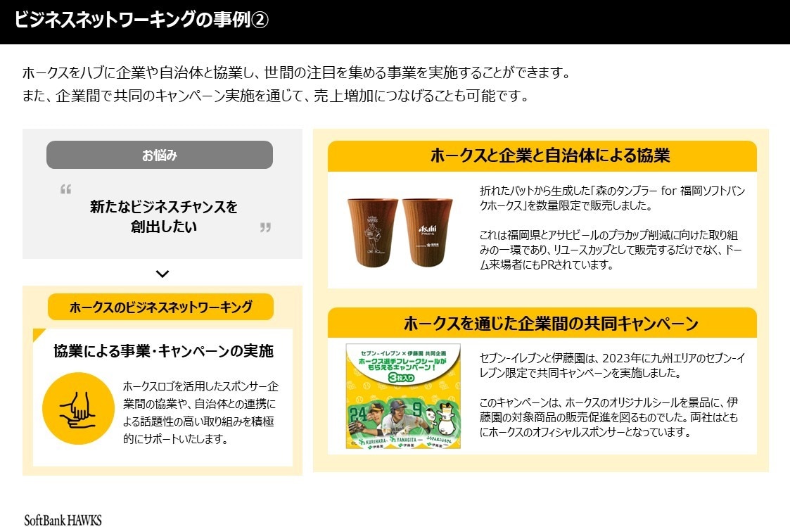 福岡ソフトバンクホークスは、多彩なスポンサーシップを通じて企業の課題解決に貢献します。