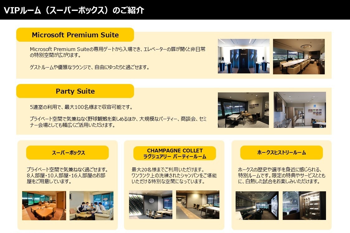 ホークスとの連携を通じて、スポンサー企業間の異業種交流を促進し、新たなアイデアやビジネスパートナーの創出をサポートします。球場という特別な空間を活用し、試合観戦と商談会を融合させたユニークなイベントも開催可能です。
