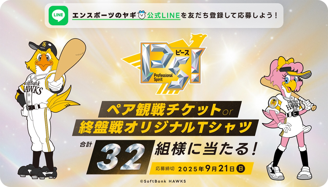 スポーツ好きが集まるマッチングアプリを運営する「エンスポーツ」は、スポーツ×恋愛の視点から、チームはもちろん「独身ホークスファン」の恋と趣味を応援する企画として、みずほPayPayドームでおこなわれる対象試合の指定席引換券や、終盤戦オリジナルTシャツが当たるキャンペーンを開催します!