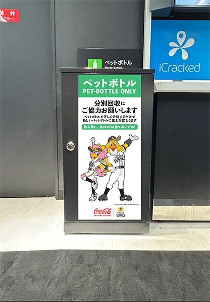また、既存のリサイクルボックスを「ボトルtoボトル」への協力を促すデザインに刷新したり、球場内大型ビジョン「ホークスビジョン」やPOPを活用し、来場者に向けた分別啓発活動も行います。