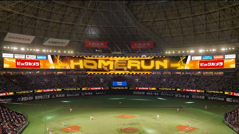 今シーズンからホークス選手のホームラン時に球場ビジョン演出にて、ビックカメラのロゴ演出を開始したことを皮切りに、各月で最も飛距離の長いホームランを放った選手へビックカメラギフトカードを贈呈する「ビックホームラン賞」も実施します。受賞ホームランは映像とともにホークス公式Xにて紹介します。