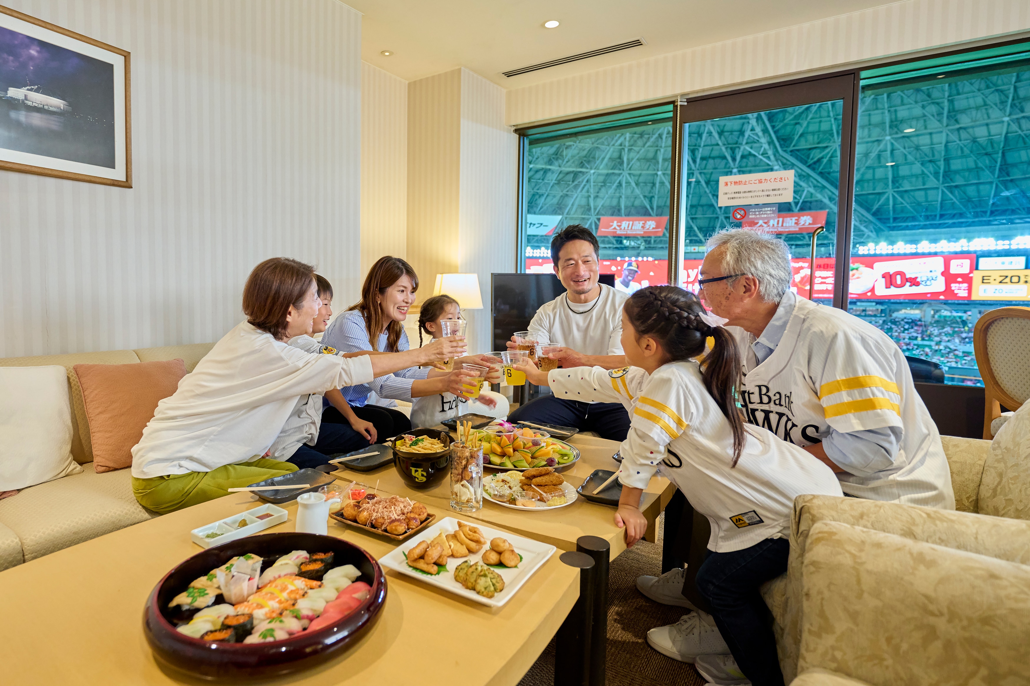ホークスの歴史や選手をより身近に感じられるホークス仕様の特別ルーム。ここでしか体験できないさまざまな特典やサービス、白熱した試合を楽しむことができます。